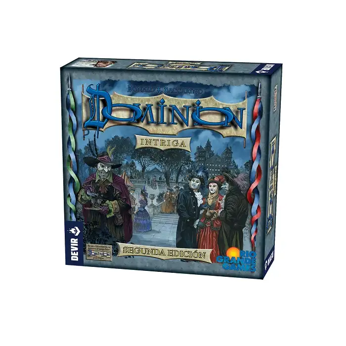 Dominion® Intriga je ekspanzija i ne može se igrati bez osnovne igre. Neophodni su vam uputstvo i osnovne karte igre Dominion®. Dominion® Intriga je prva ekspanzija osnovne igre i sadrži 300 karata, među kojima su i 26 novih karata Kraljevstva, Pobedonosne karte, Pomagači koji vam daju mogućnost izbora, kao i razne druge karte. Dominion® Intriga može da se kombinuje sa bilo kojom drugom ekspanzijom igre Dominion®. Ovo je novo izdanje Dominion® Intrige. U odnosu na prvo izdanje, šest karata je zamenjeno, a jedna je dodata. Dominion® Intriga ne sadrži osnovne karte i zato više nije samostalna ekspanzija; ako želite da igrate sa 5-6 igrača, koristite osnovne karte. Nadamo se da ćete uživati u sve većem svetu igre Dominion®!